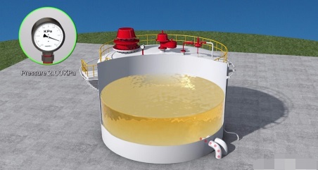 2.儲(chǔ)罐(水箱)出料,罐內(nèi)形成真空。達(dá)到氮封閥設(shè)定點(diǎn)